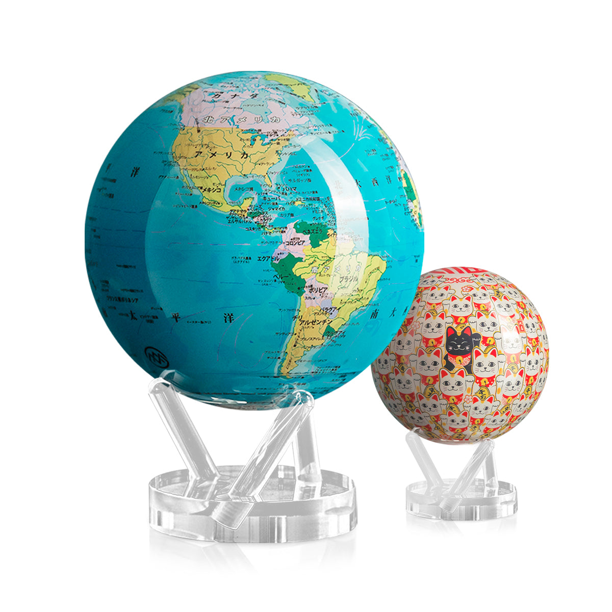 ブルー世界地図(日本語版/8.5インチ)+ 招き猫(4.5インチ)